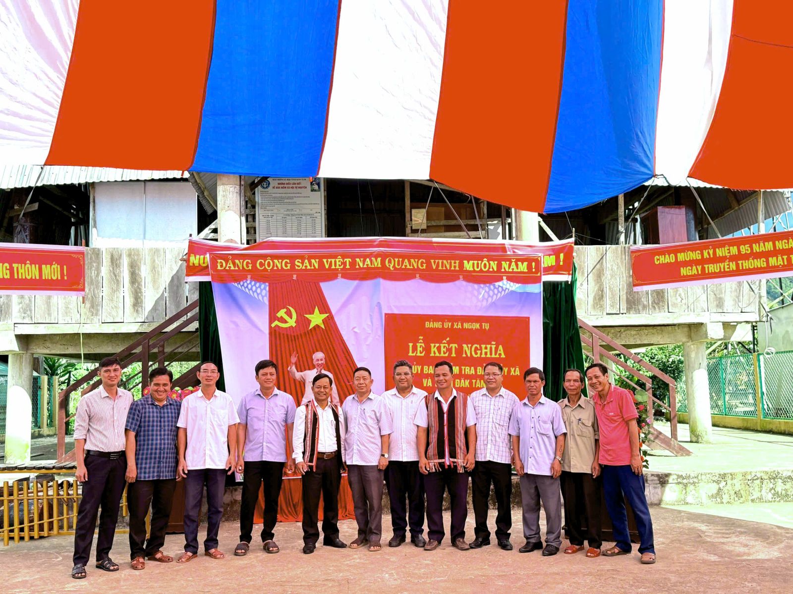 Chiều ngày 13/11/2025, tại Nhà rông thôn Đăk Tăng, Uỷ ban Kiểm trả Đảng ủy xã Ngọk Tụ tổ chức Lễ kết nghĩa giữa cơ quan Ủy ban Kiểm tra Đảng ủy và thôn Đăk Tăng, gắn với Cuộc vận động “Làm thay đổi nếp nghĩ, cách làm của đồng bào dân tộc thiểu số, làm cho đồng bào dân tộc thiểu số vươn lên thoát nghèo bền vững”.
